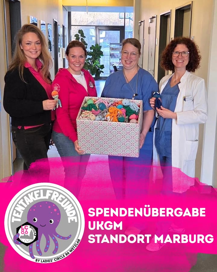 Und noch mehr gehäkelte Tentakelfreunde für die allerkleinsten Patienten! Dank unserer neuen Kooperation mit einer sehr häkelbegeisterten 'Oma-WG' konnten wir in diesem Jahr auch die Neonatologie Marburg des @ukgm_giessen_marburg mit 180 Kraken versorgen. Danke an Frau Dr. Wallot und ihr Team @kinderintensivstation_marburg für die nette Übergabe und das Verteilen in die kleinen Babyhände. 🫶